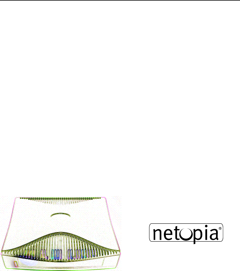 Copyright ©2000, Netopia, Inc., v.0300 All rights reserved. Printed in the U.S.A. This manual and any associated artwork, software, and product designs are copyrighted with all rights reserved. Under the copyright laws such materials may not be copied, in whole or part, without the prior written consent of Netopia, Inc. Under the law, copying includes translation to another language or format. Netopia, Inc. 2470 Mariner Square Loop Alameda, CA 94501-1010 U.S.A.