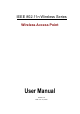 IEEE 802.11n Wireless Series Wireless Access Point User Manual Version 2.0 Date: Jan.