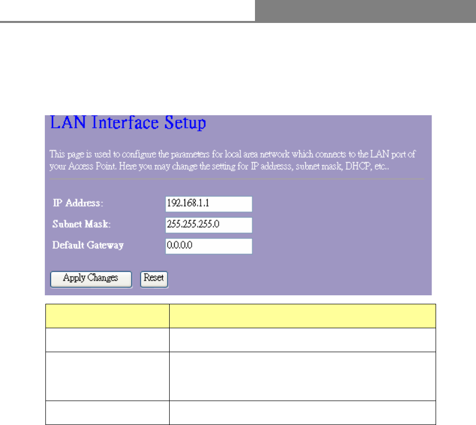 To set up the configuration of LAN interface, private IP of your AP LAN port and subnet mask for