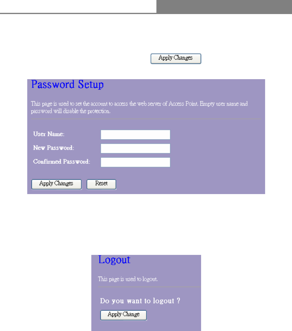 This page is used to logout. Click the “Apply Change” button to log out the system and save your