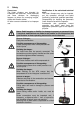 Source of danger: NTK vibrators have moving parts. Possible consequences of disregarding: Injuries for example bruises and crush injuries may be caused. WARNING Avoiding the danger: Direct contact with an oscillating part must be prevented on site by structural measures for example by shielding. For the NTK 8 AL type a cover sleeve can be supplied. The piston with swing mass SM 8/1 is covered with this. Source of danger: NTK vibrators have moving parts.