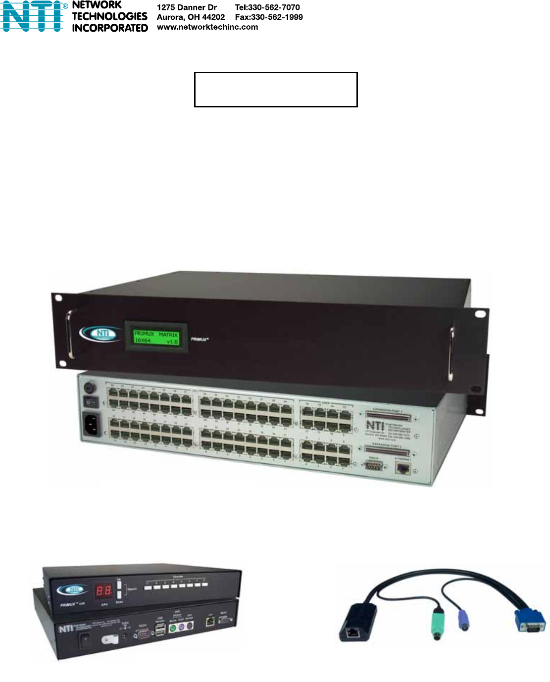 - What's in the Box Terminating Plug NTI PRIMUX-16X64 or 8X32 Cat5 KVM Matrix Switch AC Line Cord Country Specific Manual CD Quick Start Guide What's also needed (sold separately) • • • NTI Host Adapter(s) HA-UNV PS2/USB Host Adapter (Includes a CT7038 USB-PS2 Adapter)/ HA-SUN-MTX SUN Host Adapter / HA-RS-M Serial Host Adapter (see chart on page 7) NTI PRIMUX-UZR User Station CAT5/5e/6 unshielded twisted-pair cable(s) terminated with RJ45 connectors wired straight thru (pin 1 to pin 1, etc.