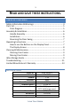 READ AND SAVE THESE INSTRUCTIONS. TABLE OF CONTENTS Safety Information & Warnings ...................................................... 4 Parts List .......................................................................................... 5 Parts Diagram ........................................................................... 5 Assembly & Installation .................................................................. 6 Handle Assembly .................................................................