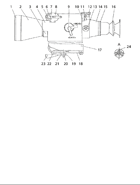 11 – Elevation scale 12 – Elevation adjustment