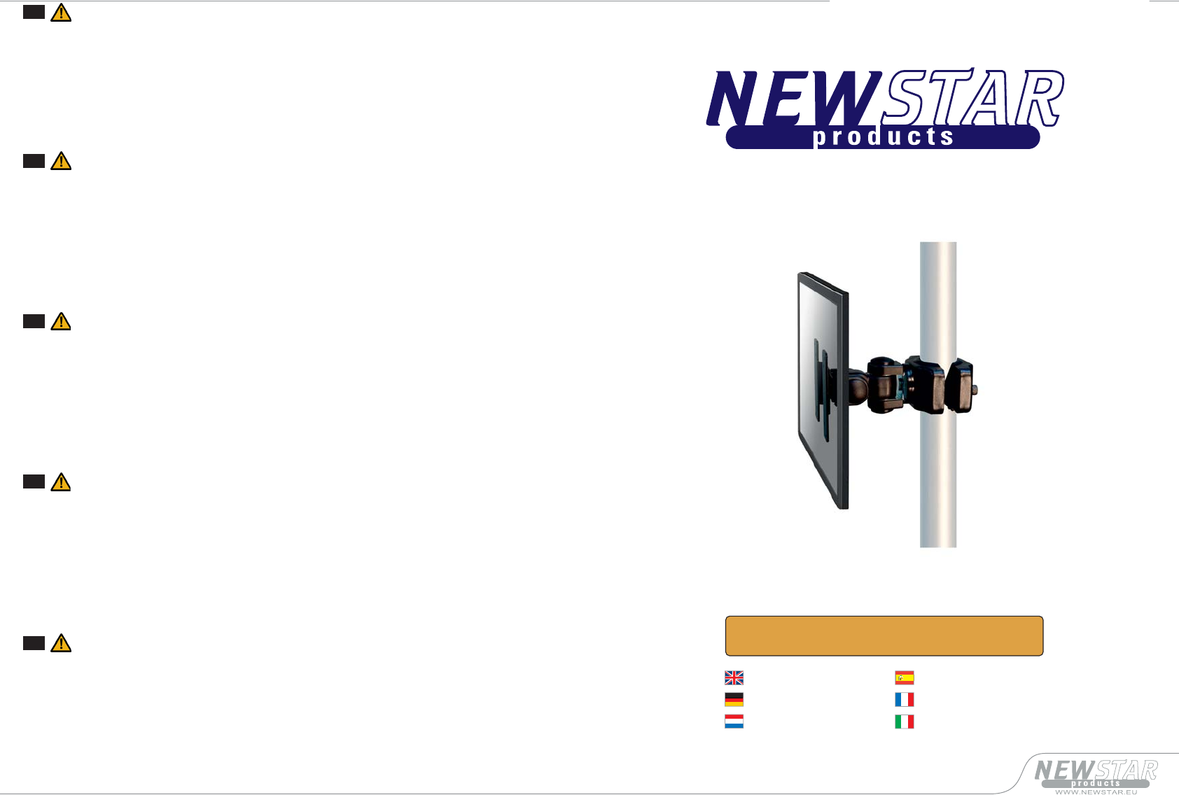 9. The wall should be strong enough to sustain a weight of at least four times of the display and Wall mount bracket combined. The mounting locationmust be able to withstand earthquake or other strong shock.