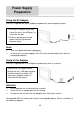 Power Supply Preparation Using the AC Adaptor The unit is supplied with an AC adaptor for powering it and charging its battery. 1. Connect AC adaptor to the right side of the unit in the USB port, as shown on the right. 2. Plug the two-prong end of the power cord into a grounded electrical outlet. Note: Turn unit's power off before unplugging. In the case of using the adaptor, the LCD screen will be brighter than with the rechargeable battery.
