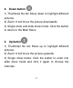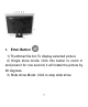 2. Down button 1) Thumbnail file list: Move down to highlight different pictures 2) Zoom: It will move the picture downwards 3) Single show and slide show mode: Click the button to return to the Main Menu 3. Up button 1) Thumbnail file list: Move up to highlight different pictures 2) Zoom: It will move the picture upwards 3) Single show mode: Click the button to enter into slide show mode and click it again to choose the intervals.