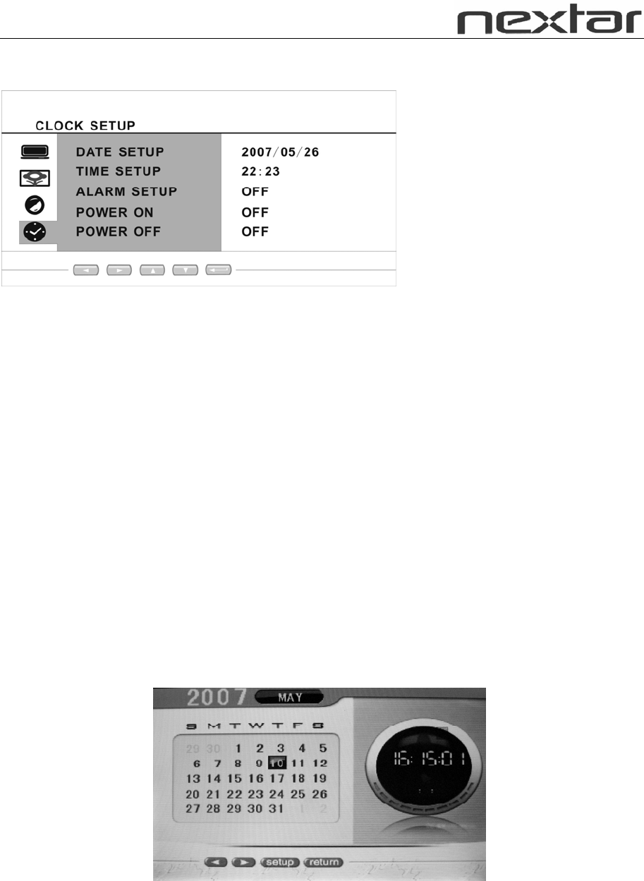DATE SETUP: Press arrow keys and ENTER button to setup the date.
