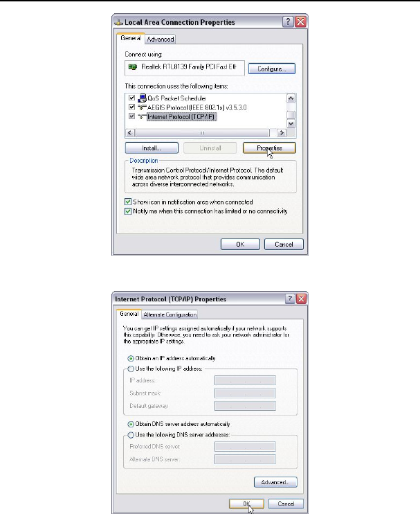 4. Select “Obtain an IP address automatically” and “Obtain DNS server address