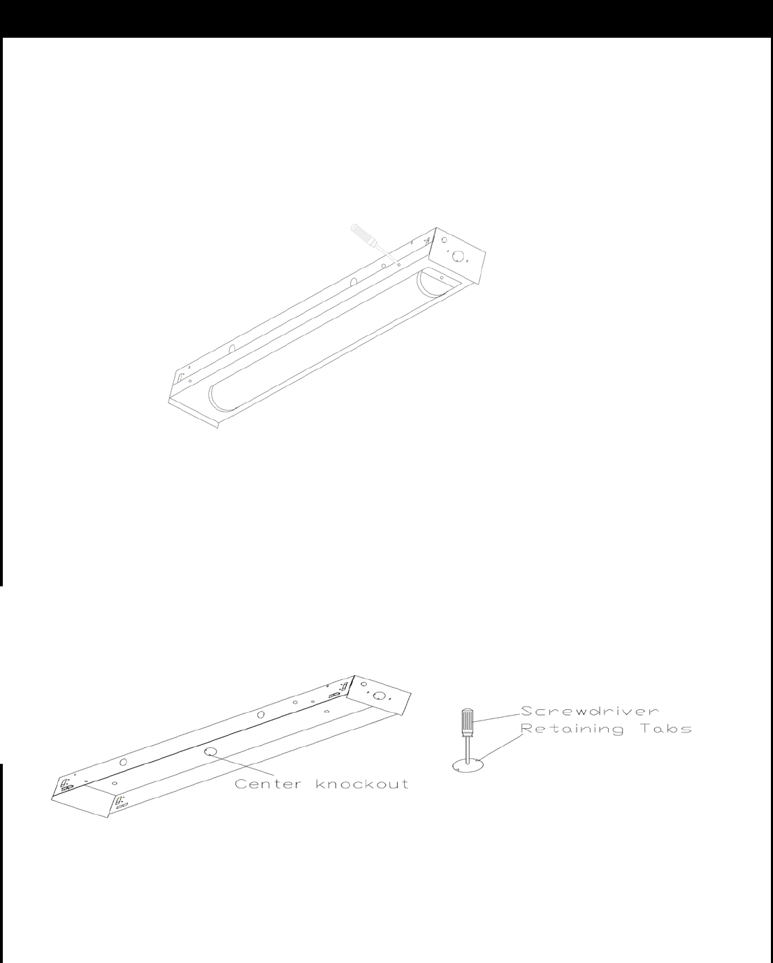 2) Carefully turn the fixture housing over and locate the center knockout on the housing.