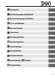 • Nikon filters can be divided into three types: screw-in, slip-in, and rearinterchange. Use Nikon filters; filters manufactured by other makers may interfere with autofocus or electronic range finding. • The D90 can not be used with linear polarizing filters. Use the C-PL circular polarizing filter instead. Filters • The NC and L37C filters are recommended for protecting the lens.