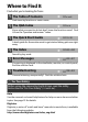 Where to Find It Find what you’re looking for from: i The Table of Contents ➜ 0 x–xvii Find items by function or menu name. i The Q&A Index ➜ 0 iv–ix Know what you want to do but don’t know the function name? Find it from the “question and answer” index. i The Quick Start Guide ➜ 0 19–20 A brief guide for those who want to get started taking pictures right away. i The Index ➜ 0 425–430 Search by key word.
