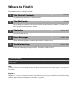 Where to Find It Find what you’re looking for from: i The Table of Contents ➜ 0 iv–xi ➜ 0 ii–iii Find items by function or menu name. i The Q&A Index Know what you want to do but don’t know the function name? Find it from the “question and answer” index. i The Index ➜ 0 322–325 ➜ 0 305–308 Search by key word. i Error Messages If the camera displays a warning, find the solution here. i Troubleshooting ➜ 0 299–304 Camera behaving unexpectedly? Find the solution here.