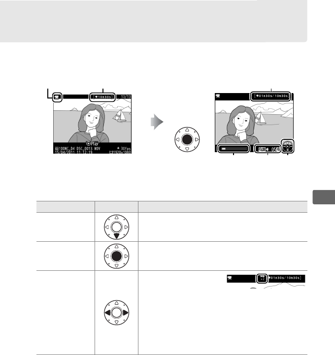 Movies are indicated by a 1 icon in full-frame playback (0 235).