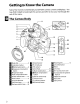 Getting to Know the Camera Take a few moments to familiarize yourself with camera controls and displays. You may find it helpful to bookmark this section and refer to it as you read through the rest of the manual. BJ The Camera Bod)' ~-;--22 e--:-:--:-- 23 ~-;--24 '----17 18 '----19 II Mode dial 4 II Infrared receiver II Focal plane mark (-e-) 1m BF-1 A body cap IJ IIIl!I (information) button .........