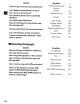 IW:i()()s Q&Alndex Table of Contents ;a Introduction ='i1 Tutorial iii Framing Pictures in the Monitor (Live View) C Recording and Viewing Movies :W' ::57 -.: ~ - -~ talmage Recording Options III Focus i!!I Release Mode - . .~<' • ""S. ~ - , 11. ". ~ <"'< _ - .. '''' - tijJ: .~15· ~ mISO Sensitivity [i] Exposure [!ill White Balance . , .~.1JI~ - Iillmage Enhancement -, -- .' - '"- mllllS' .
