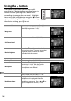 previewed in the monitor (modes P, S, A, and %; 0 86).