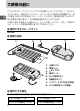安全上のご注意 ■ 危 険 電池について Jp " " " # " 危険 電池からもれた液が目に入ったときは、すぐにきれいな水で洗い、 医師の治療を受けること そのままにしておくと、目に傷害を与える原因となります。 危険 電池からもれた液が皮膚や衣服に付いたときは、すぐにきれいな水 で洗うこと そのままにしておくと、皮膚がかぶれたりする原因となります。 警 告 電池について 警告 禁止 使用説明書に表示された電池を使用すること 液もれ、発熱、破裂の原因となります。 新しい電池と使用した電池、種類やメーカーの異なる電池をまぜて 使用しないこと 液もれ、発熱、破裂の原因となります。 警告 外装チューブをはがしたり、キズをつけないこと また、外装チューブがはがれたり、キズがついている電池は絶対に 使用しないこと 液もれ、発熱、破裂の原因となります。 " ( # $ # " " " 4 電池は幼児の手の届かないところに置くこと 保管注意 幼児の飲み込みの原因となります。 万一飲み込んだ場合は、直ちに医師にご相談ください。 水かけ 禁止 水につけたり、濡らさないこと 液もれ、発熱の原因とな