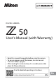 E L P Nikon Z 50 S M A No reproduction in any form of this manual, in whole or in part (except for brief quotation in critical articles or reviews), may be made without written authorization from NIKON CORPORATION.
