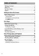 Table of Contents Package Contents ......................................................................... ii Menu List ....................................................................................... vi For Your Safety .............................................................................. x Notices.......................................................................................... xiv Getting to Know the Camera 1 Parts of the Camera .................................................