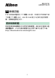 ❚❚用戶設定的新選項:f7 和 g5“ 電動變焦 (PZ)按鍵 選項 ” 電動變焦 (PZ)按鍵選項 已新增為用戶設定 f7 和 g5。調整 電動變焦設定。 項目 使用 x/w 按鍵 電動變焦速度 說明 若選擇 開啟,則可以在按下 X 按鍵時以電子方 式進行放大,在按下 W 按鍵時進行縮小(電 動變焦)。 • 若 ML-L7 遙控器連接至相機,當選擇 開啟 時, 您也可以使用遙控器的 + 按鍵(遠攝)和 − 按 鍵 (廣角)進行變焦。 透過選擇負值減慢速度,或選擇正值加快速度, 您可以使用指定了電動變焦功能的按鍵來選擇 鏡頭放大和縮小的速度。 • 在用戶設定 g5 電動變焦 (PZ)按鍵選項 中, 您可以分別設定 記錄前 / 記錄後 和 記錄期間。 • 這些選項僅適用於電動變焦鏡頭。 • 新增該選單項目後,用戶設定 高光顯示 從 g5 變更為 g6。 D 鏡頭雜訊 在短片片段中可能會聽到變焦過程中鏡頭發出的雜訊。若您在使用 指定了電動變焦功能的按鍵時發現鏡頭雜訊,建議將用戶設定 g5 電動變焦 (PZ)按鍵選項 > 電動變焦速度 > 記錄期間 設定為較慢 的變焦速度。 7