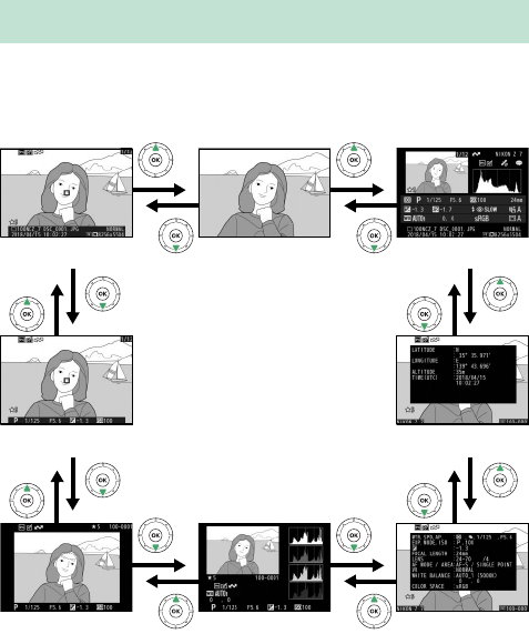 コマ表示モードでは、画像についての詳しい情報を見ることができま
