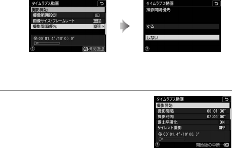 露光時間よりも撮影間隔を優先して撮影するかどうか選ぶ