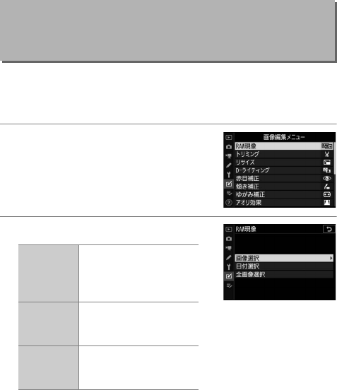 - 画像編集メニュー:撮影した画像に行う編集機能