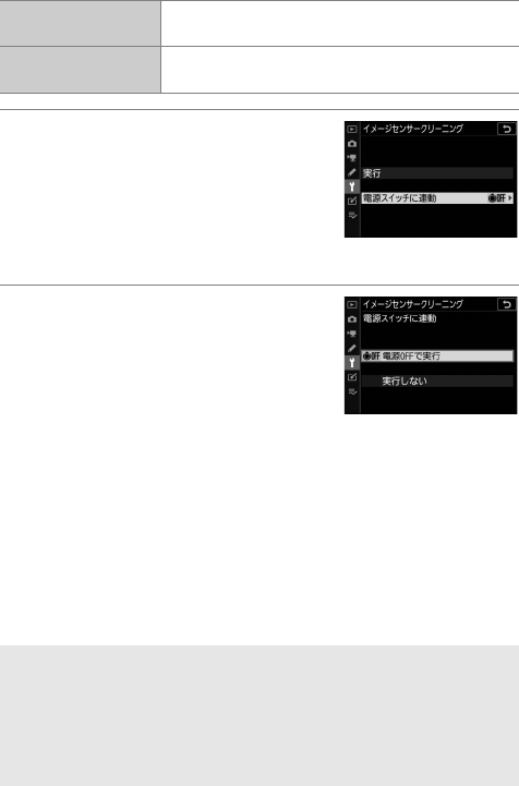 にカメラを操作すると、イメージセンサークリーニングは中断します。