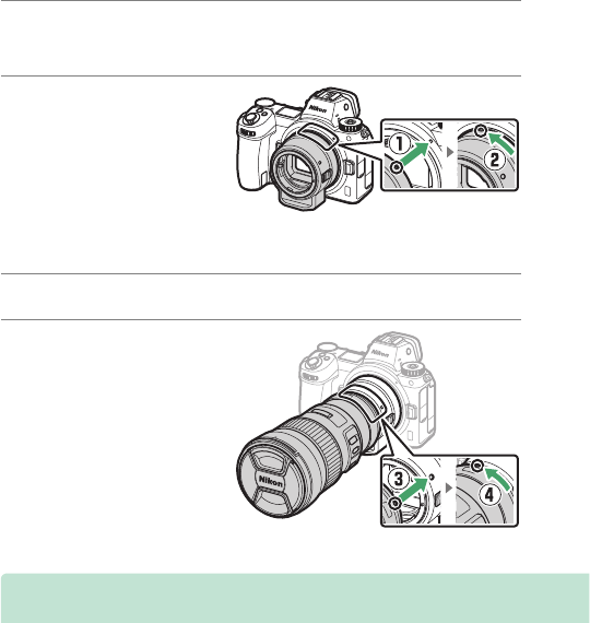 マウントアダプターをカメラに取り付けたり取り外すとき、レンズをマ