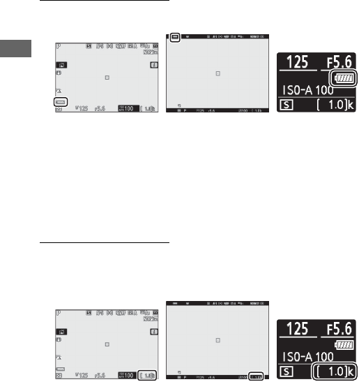 Kad kamera ir ieslēgta, uzņemšanas displejā un vadības panelī tiek rādīts