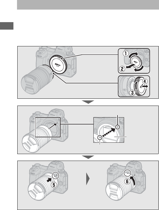 Grieziet objektīvu, kā parādīts attēlā, līdz tas ar klikšķi fiksējas vietā