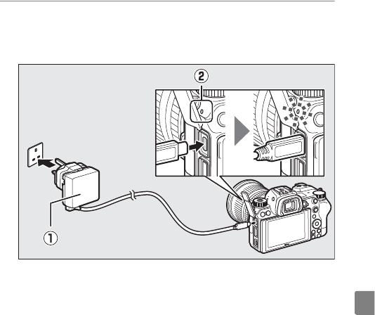 Po kontrole vypnutí fotoaparátu připojte síťový