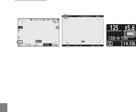 Stav baterie se zobrazuje při zapnutém fotoaparátu na