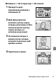 D Відеозйомка • Відеозйомку буде завершено автоматично в таких випадках: - досягнуто максимальної тривалості відео; - вибрано інший режим; - перемикач фото/відео переведено в положення C; - знято об’єктив. • У відзнятому епізоді може бути чутно звуки, створювані фотокамерою в таких ситуаціях: - під час автофокусування; - під час зменшення вібрацій; - під час використання діафрагми з електроприводом.