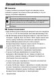 Догляд за фотокамерою й елементом живлення: застереження Догляд за фотокамерою ● Не допускайте падіння Не допускайте падіння фотокамери й об’єктива, а також бережіть їх від ударів. Виріб може вийти з ладу, якщо зазнає впливу сильних ударів або вібрації. ● Бережіть від вологи Бережіть фотокамеру від вологи. Іржавіння внутрішніх механізмів через потрапляння води всередину фотокамери може не лише призвести до значних витрат на ремонт, а й завдати невиправних пошкоджень.