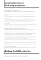 • The “zoom in” function on the camera monitor is not available during RAW video