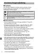 Håndtér ikke stikket under opladning af produktet, og anvend ikke lysnetadapteren i tordenvejr. Manglende overholdelse af denne anvisning kan medføre elektrisk stød. Må ikke håndteres med de bare hænder på steder, der udsættes for meget høje eller meget lave temperaturer. Manglende overholdelse af denne anvisning kan medføre forbrændinger eller forfrysninger. A FORSIGTIG Efterlad ikke objektivet, mens det peger i retning af solen eller en anden stærk lyskilde.