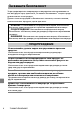 Лазери и други източници на ярка светлина Не насочвайте лазери и други източници на изключително ярка светлина към обектива, тъй като това може да повреди сензора за изображения на фотоапарата. ● Почистване При почистване на тялото на фотоапарата използвайте гумена круша, за да премахнете праха и власинките, след което попийте внимателно с мека, суха кърпа. След използване на фотоапарата на плажа или на брега, почистете пясъка с кърпа, леко напоена в чиста вода и след това подсушете щателно фотоапарата.