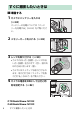 ❚❚ バッテリー室カバーが外れたときは バッテリー室カバーが開いている状態でカバーに無理な負荷がかかる と、破損防止のため外れる場合があります。バッテリー室カバーが外 れた場合は図のように取り付けてください。 • バッテリー室カバーは、あらかじめヒンジが見えている状態にして 取り付けてください。 730 使用できるアクセサリー