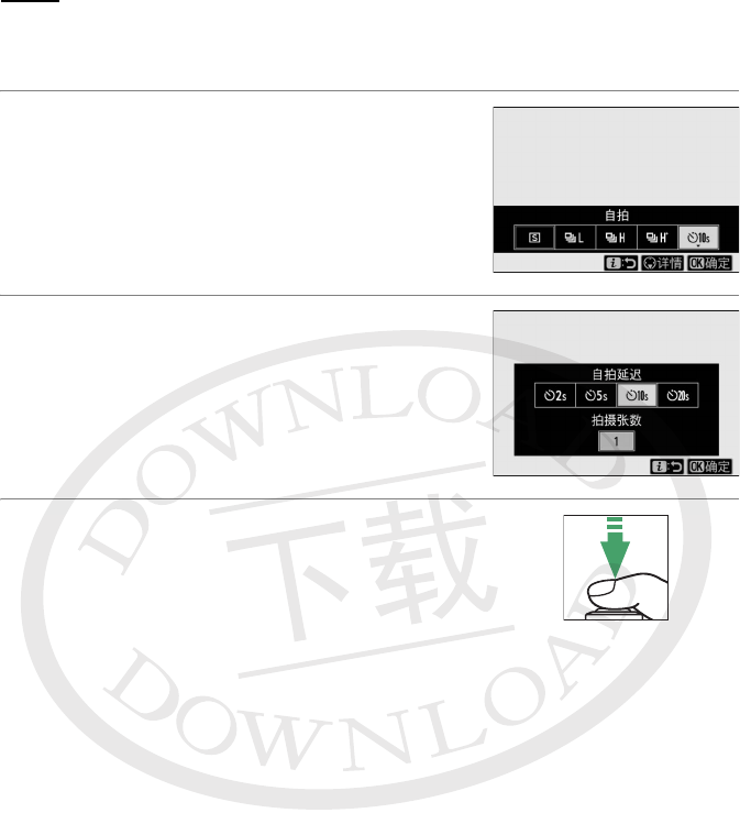 在自拍模式下,按下快门释放按钮将开始计时,计时器超过时效时将拍