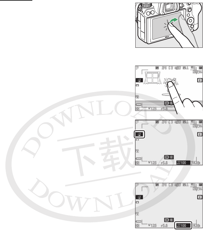 指触摸屏幕来操作这些控制。在取景器拍摄期