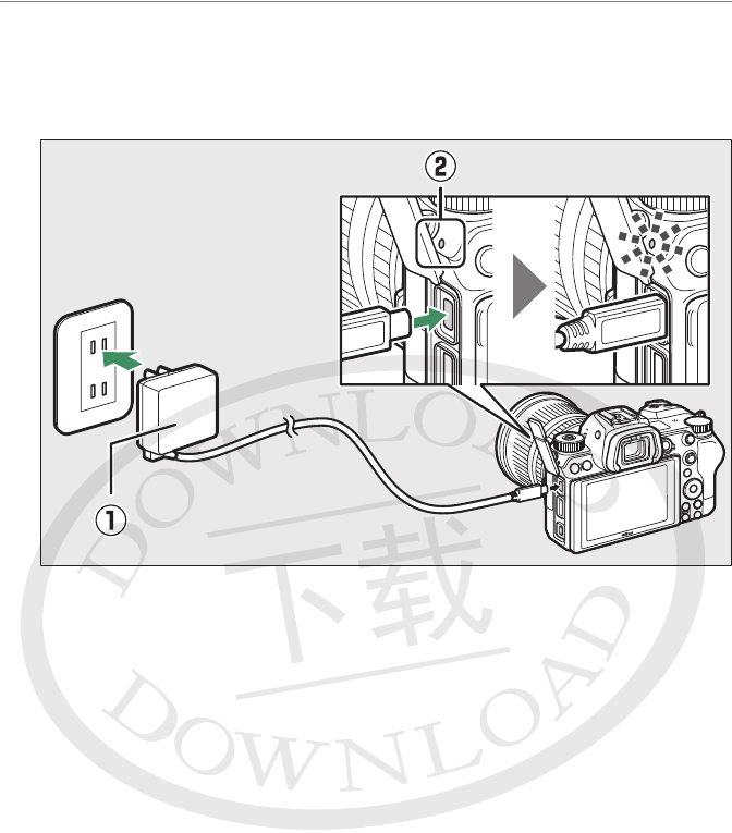 充电过程中照相机充电指示灯 w)将以琥珀色点亮。充电完成时