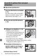 4 Premere il pulsante di registrazione filmato per avviare la registrazione. • Un indicatore di registrazione verrà visualizzato nel monitor. Il monitor mostra anche il tempo rimanente, o in altre parole la quantità approssimativa di nuove sequenze che possono essere registrate nella card di memoria. 1 2 1 Indicatore di registrazione 2 Tempo rimanente • La fotocamera può essere rimessa a fuoco durante la registrazione premendo il pulsante AF-ON.