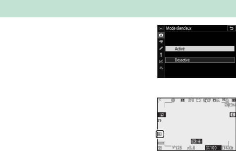 [Activé] pour [Mode silencieux] dans le