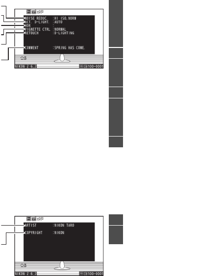 - Menu Prise de vue vidéo : options de prise de vue vidéo