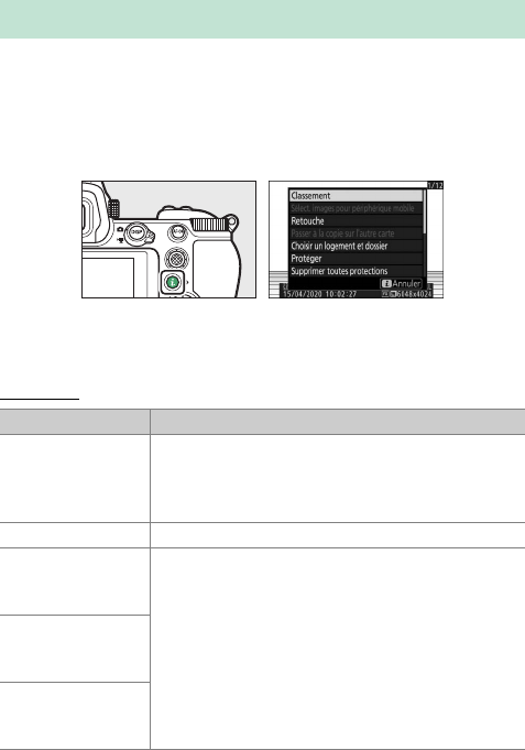 - Menu Prise de vue vidéo : options de prise de vue vidéo