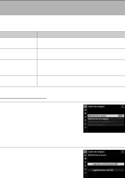 Copiez les images d’une carte mémoire à l’autre lorsque deux