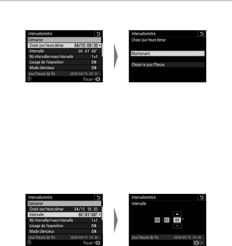 Paramétrez les réglages de l’intervallomètre.