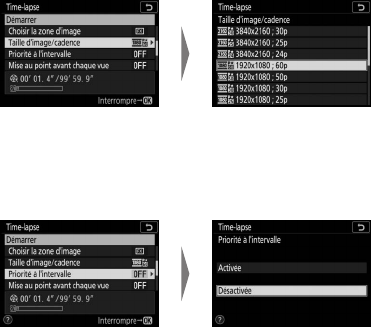 - Menu Prise de vue vidéo : options de prise de vue vidéo